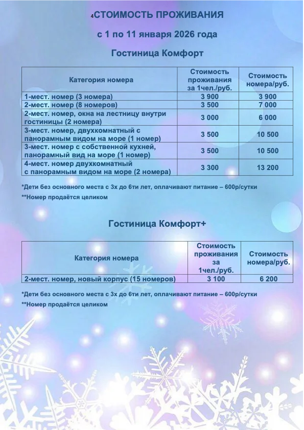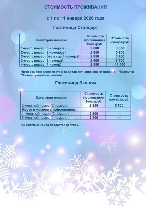 *В стоимость проживания включено 3-х разовое питание.